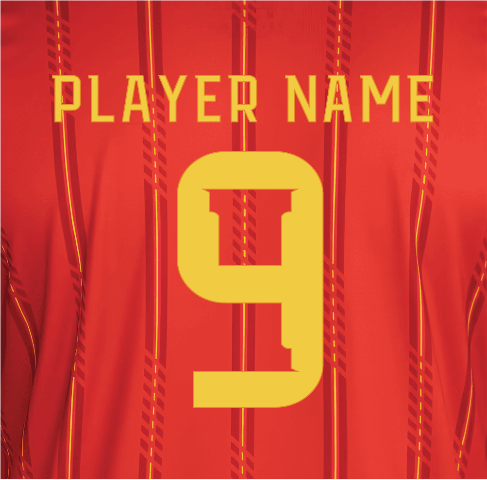 Spain World Cup Home 2026 Font Kit inspired by the national team’s jersey lettering. Perfect for football kit designs, graphics, mockups, and social media content. Includes letters and numbers. Digital download, easy to use.